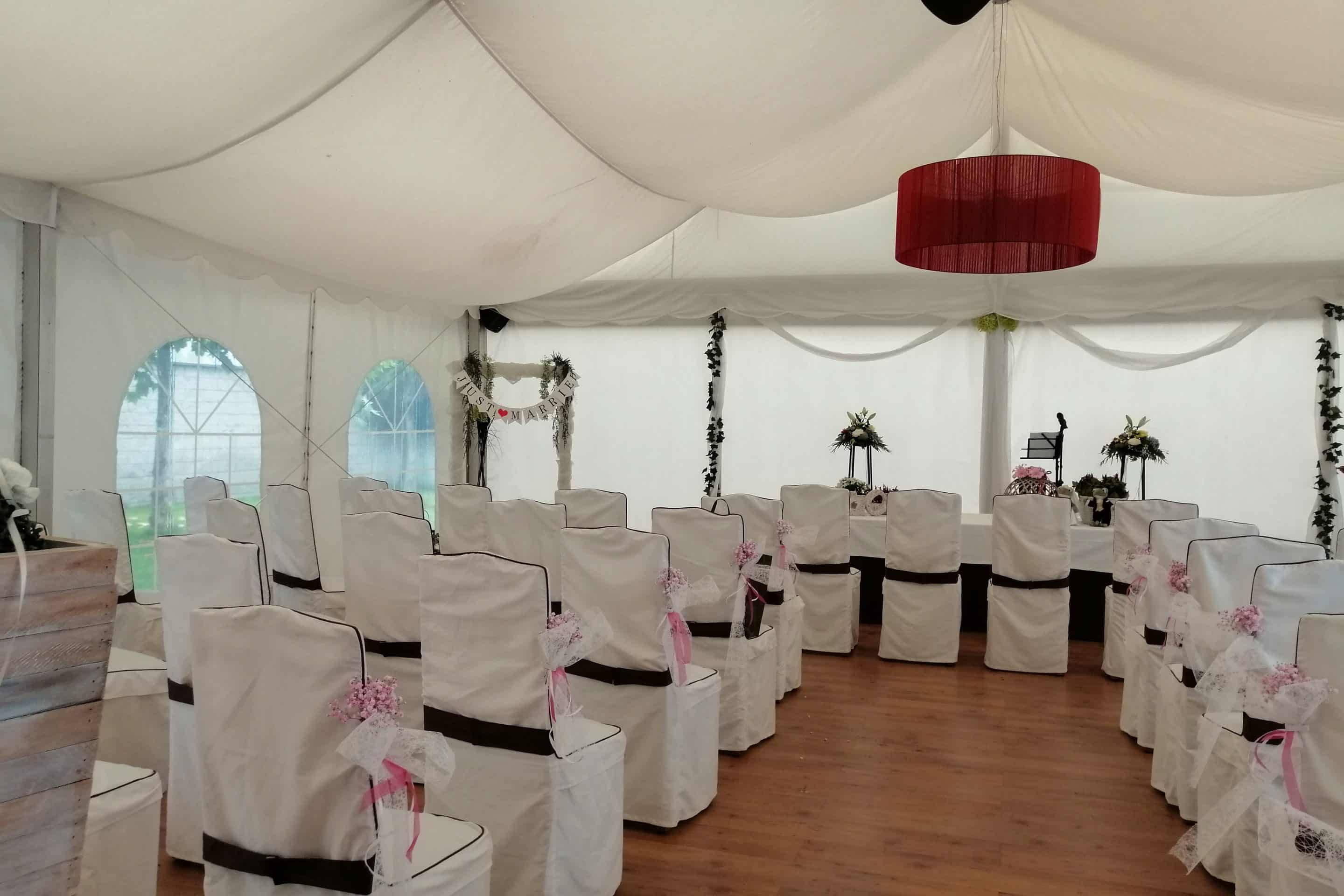 Contamos con amplios salones de boda en León, además de la opción de montar carpas en nuestros jardines totalmente personalizadas para tu boda.